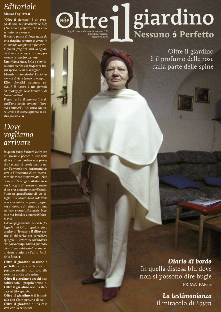 NèP (Nessuno è Perfetto) nasce e si sviluppa allo scopo di promuovere il support tra pari in salute mentale. Tra le attività è di particolare importanza la rivista Oltre il Giardino, realizzata da Gin Angri che ne è il direttore reponsabile, Mauro Fogliaresi, poeta e terapeuta della scrittura, Tomaso Baj, designer grafico e Giovanna Galeazzi, redattrice che fu collaboratrice del gruppo di Basaglia negli anni ’70.